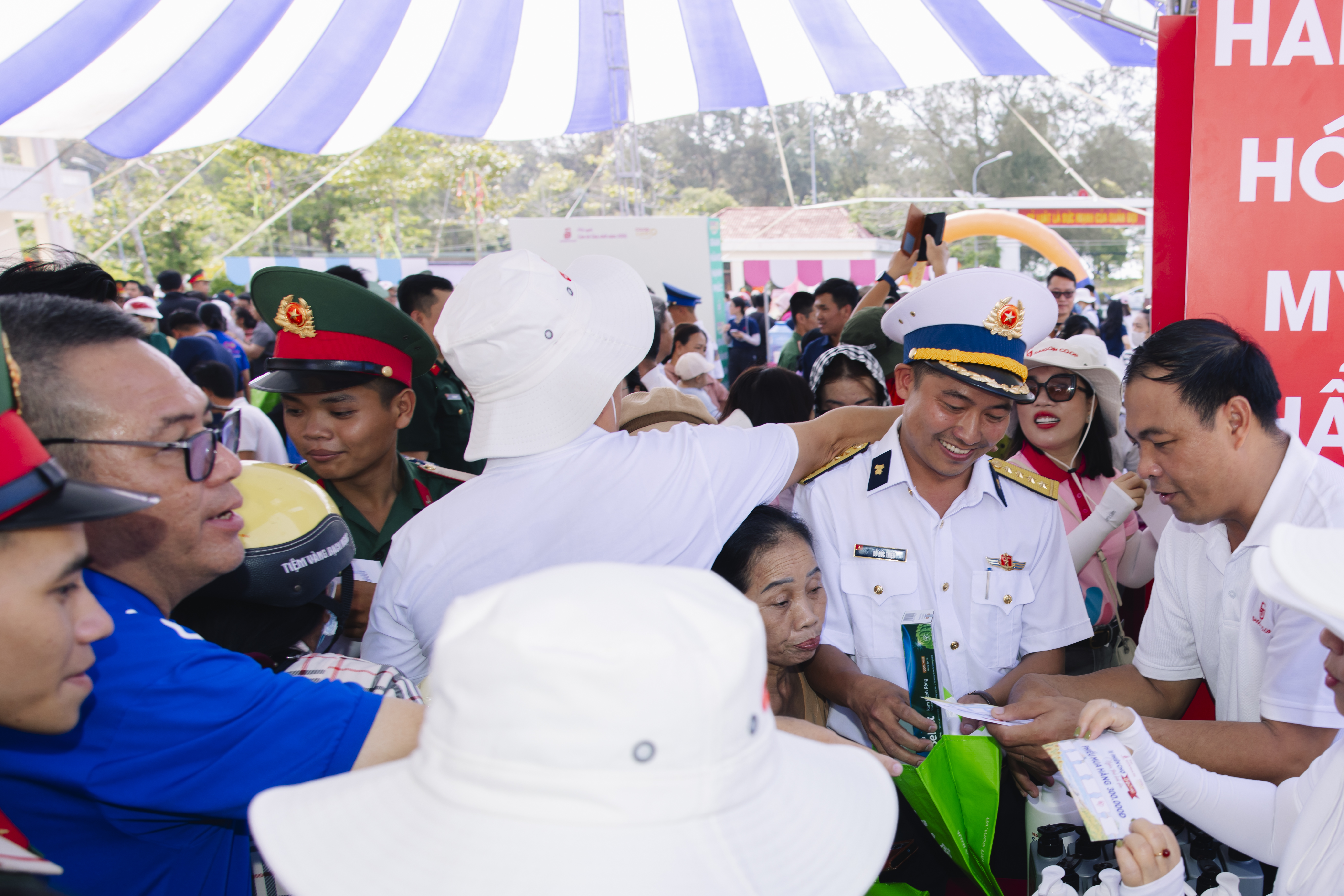 Không gian chương trình tại sân doanh trại Công binh phòng thủ khu vực 06 được bố trí như một siêu thị thu nhỏ, để cán bộ, chiến sĩ, bà con và giáo viên trực tiếp lựa chọn các nhu yếu phẩm phục vụ đời sống hằng ngày. Hàng hóa gồm nhiều sản phẩm quen thuộc trong hệ thống bán lẻ Saigon Co.op như thực phẩm khô, gia vị, hàng tiêu dùng và đồ gia dụng, bảo đảm chất lượng và phù hợp với điều kiện sinh hoạt tại đảo xa.